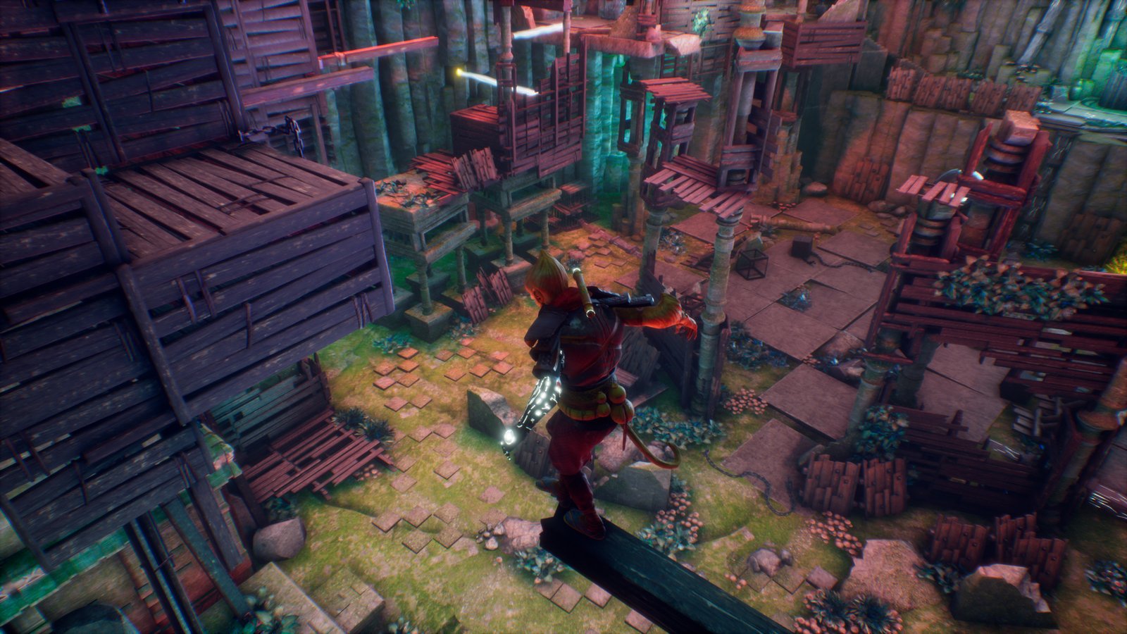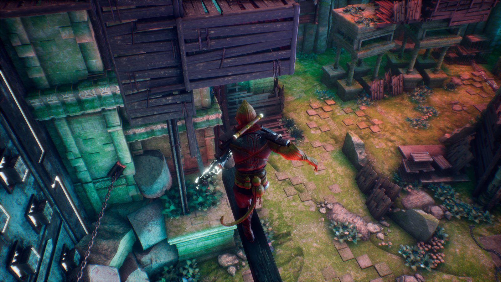 Game Outline: Como antiguo héroe que era, Wu saltará, correrá, hará parkour a lo largo de acantilados, cornisas y plataformas, antiguas edificaciones y escenarios futuristas, para ir recogiendo la información que le proveerán los habitantes del lugar sometidos por peligrosos robots que tendrá que vencer combatiendo con ellos, así como haciendo uso de los poderes que ira paulatinamente recuperando por medio de la resolución de puzles intrincados y sesudos… Recogiendo Mineral se podrá hacer cada vez más fuerte para superar pruebas cada vez más complejas y combatir con enemigos por momentos más mortíferos. El jugador podrá decidir qué poderes usar conforme los va desbloqueando a lo largo del juego, para resolver los puzles o en su propio beneficio en los combates con los enemigos… Avanzando por los distintos niveles, se irá cerrando el circulo alrededor de las atrocidades que cometió, pudiendo redimirse ayudando a los